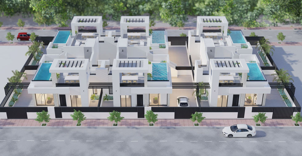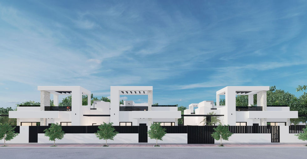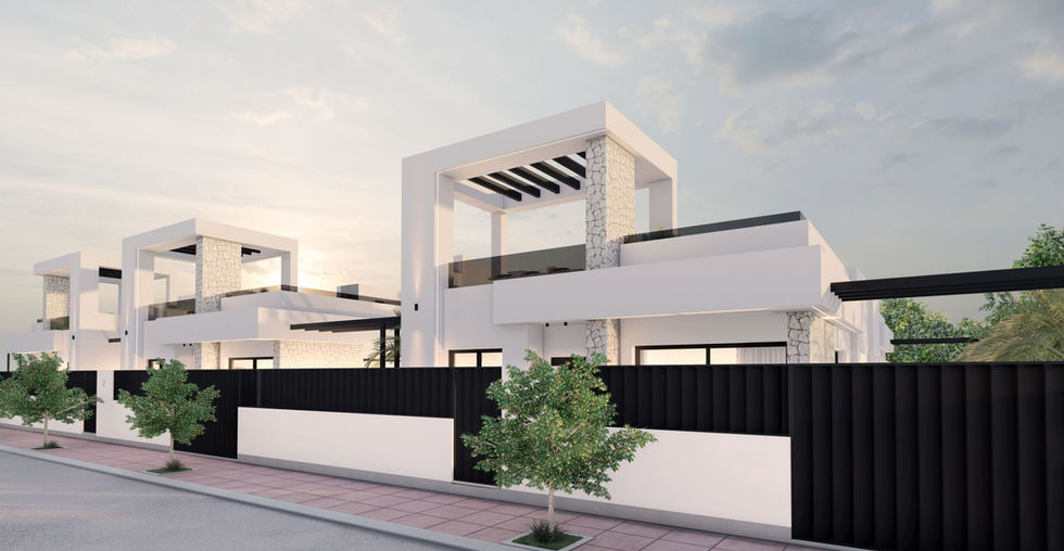 The villa shown in the video is a previous similar project at Santa Rosalía. While the layout differs — the featured villa is two-storey, whereas the Milos Villa is single-storey — the overall concept, interior finishes, materials, and quality will be fully consistent with what you see in the video.